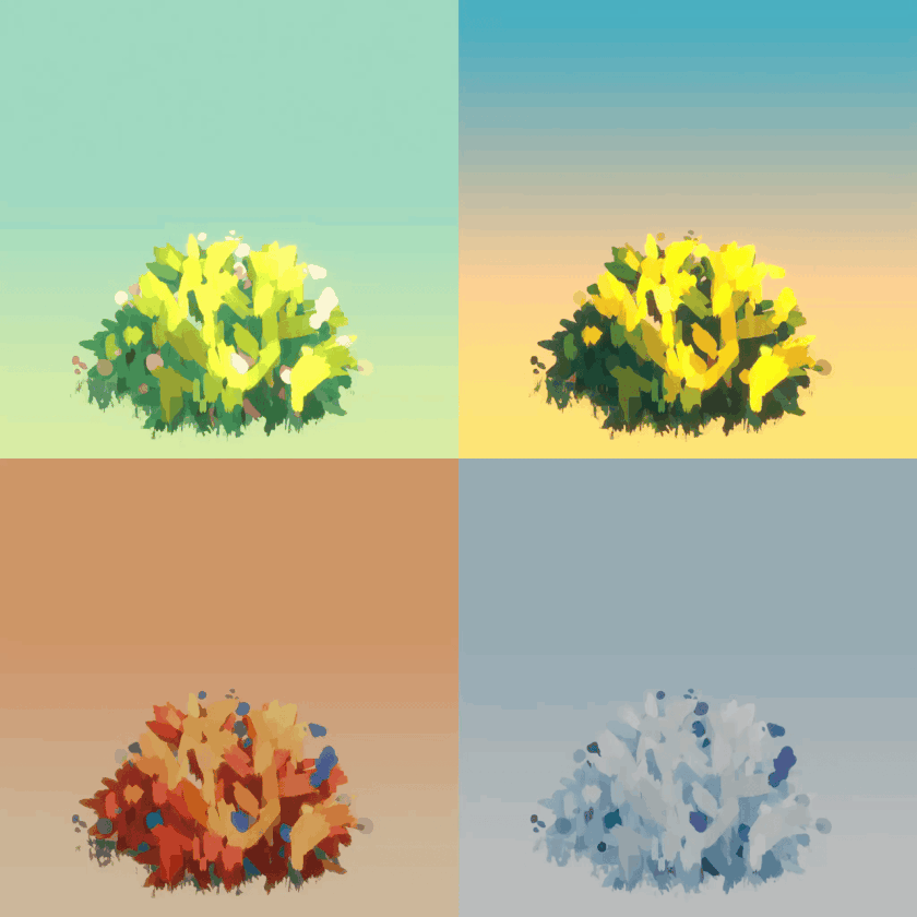 Select from seasonal shaders for foliage, trunks, and grass and customize your color gradients to your heart’s content.